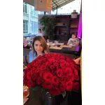 Роза Premium, 60 см – 101 шт.Лента атласная – 2 шт.