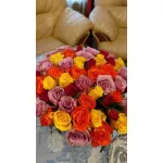 Букет из 51 розы разноцветный в крафте
