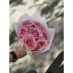 Букет из 7 розовых роз 40 см — нежная воздушная композиция с веточками фисташки. Лучший выбор для красивых романтических признаний. Утонченный пастельный оттенок бутонов нравится многим. Он ассоциируется со счастливым будущим, радостными новостями и незабываемыми событиями в жизни. Дарите цветы, чтобы рассказать о возвышенности ваших чувств, выразить симпатию и поддержку.
